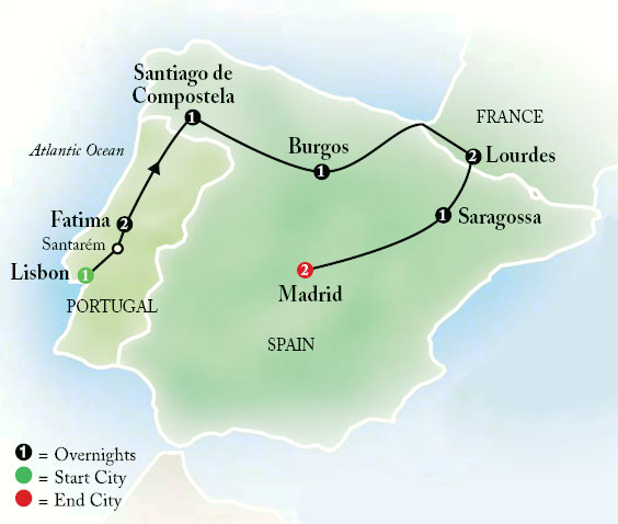 Cross the Pyrenees Mountains to Saragossa. Enjoy sightseeing with a Local Guide and visit Spain’s most famous Marian Shrine—the BASILICA OF OUR LADY OF THE PILLAR, home to a miraculous image of the Virgin Mary. According to local tradition, on January 2 of the year 40, the Mother of God appeared upon a pillar to the Apostle St. James the Greater while he was preaching the Gospel. The pillar is conserved and venerated within the basilica today. (B)